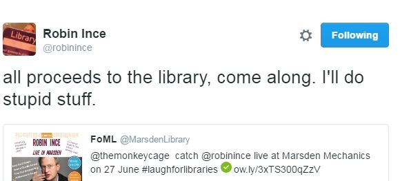 From Twitter: Get your Robin Ince tickets now!